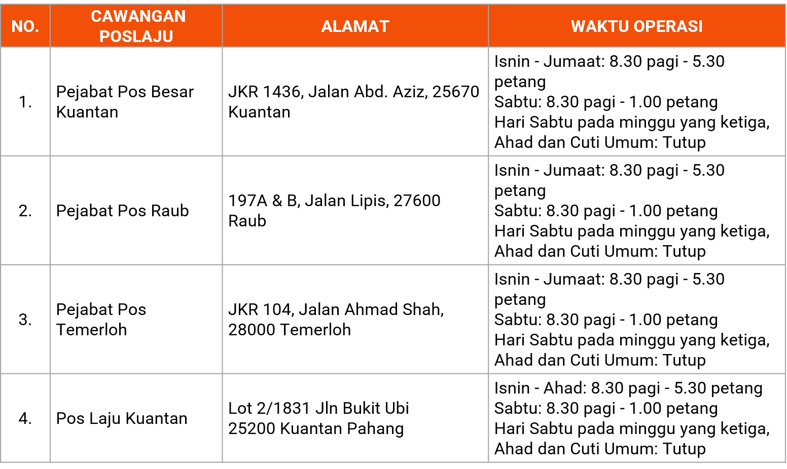 Waktu Operasi Pos Laju Seluruh Negeri Di Malaysia